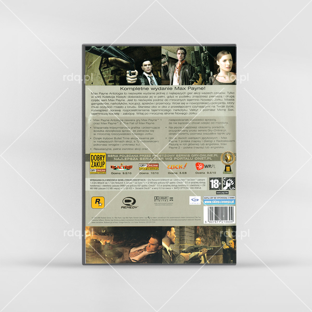 Max Payne: Antologia Rok wydania: 2008 Producent: Rockstar Games Wydawca: Rockstar Games Wydanie: PL - Cenega Gatunek: TPP, Gra Akcji, Strzelanka Tryb: Singleplayer Pudełko
