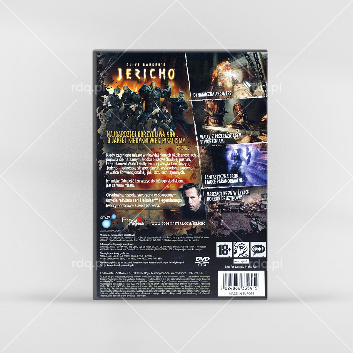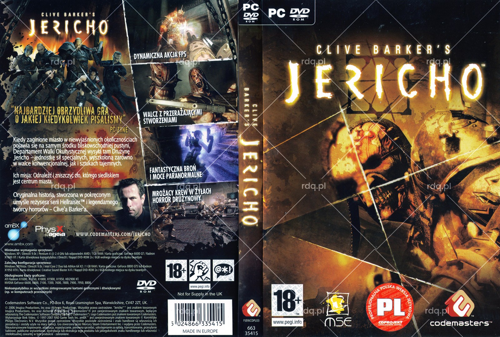 Clive Barker's Jericho Rok wydania: 2007 Producent: MercurySteam Wydawca: Codemasters Wydanie: PL - Codemasters Gatunek: FPP, FPS, Gra akcji, Horror Tryb: Singleplayer Pudełko Okładka Kategoria: DVD BoxPrzez Radek Jakubiak20 marca 2026Project navigationPoprzedniePrevious project:Unreal II: The Awakening