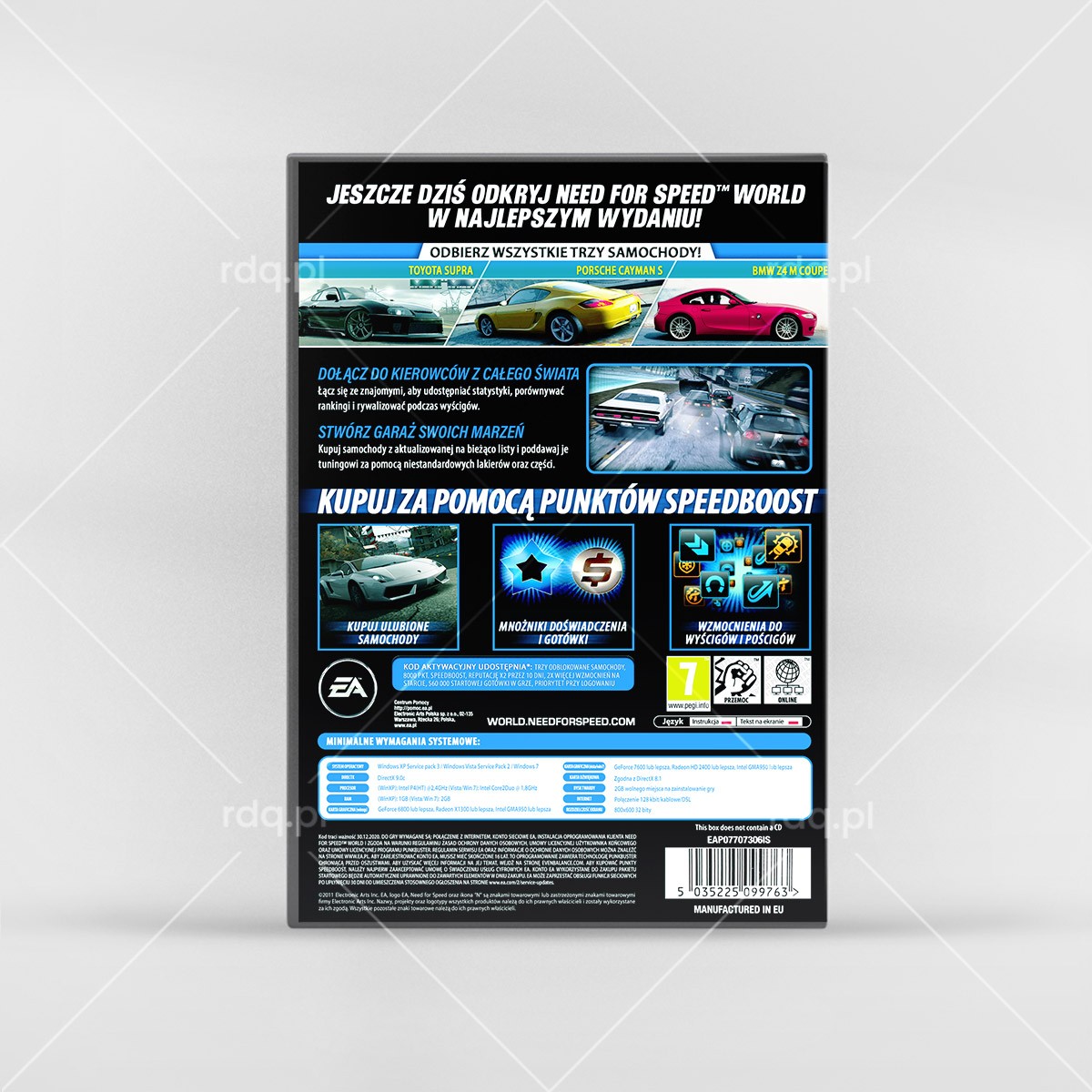 Need For Speed: World Rok wydania: 2010 Producent: Quicklime Games Wydawca: Electronic Arts Wydanie: PL - EA Polska Gatunek: Wyścigi, Samochodowe Tryb: Multiplayer Pudełko Okładka Kategoria: DVD BoxPrzez Radek Jakubiak27 listopada 2025Project navigationPoprzedniePrevious project:Need For Speed: Shift 2 UnleashedNastępneNext project:Cyberpunk 2077: Ultimate Edition