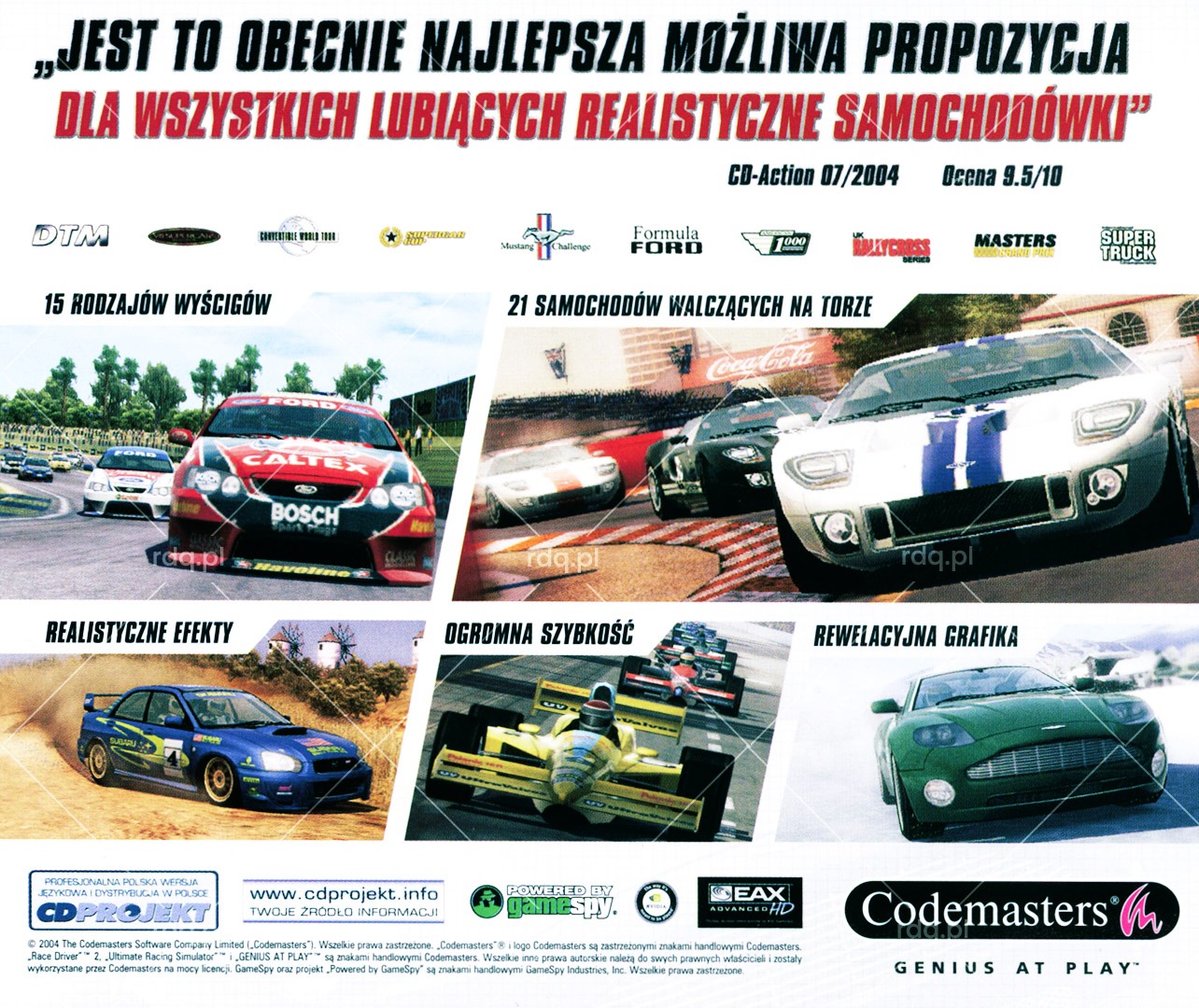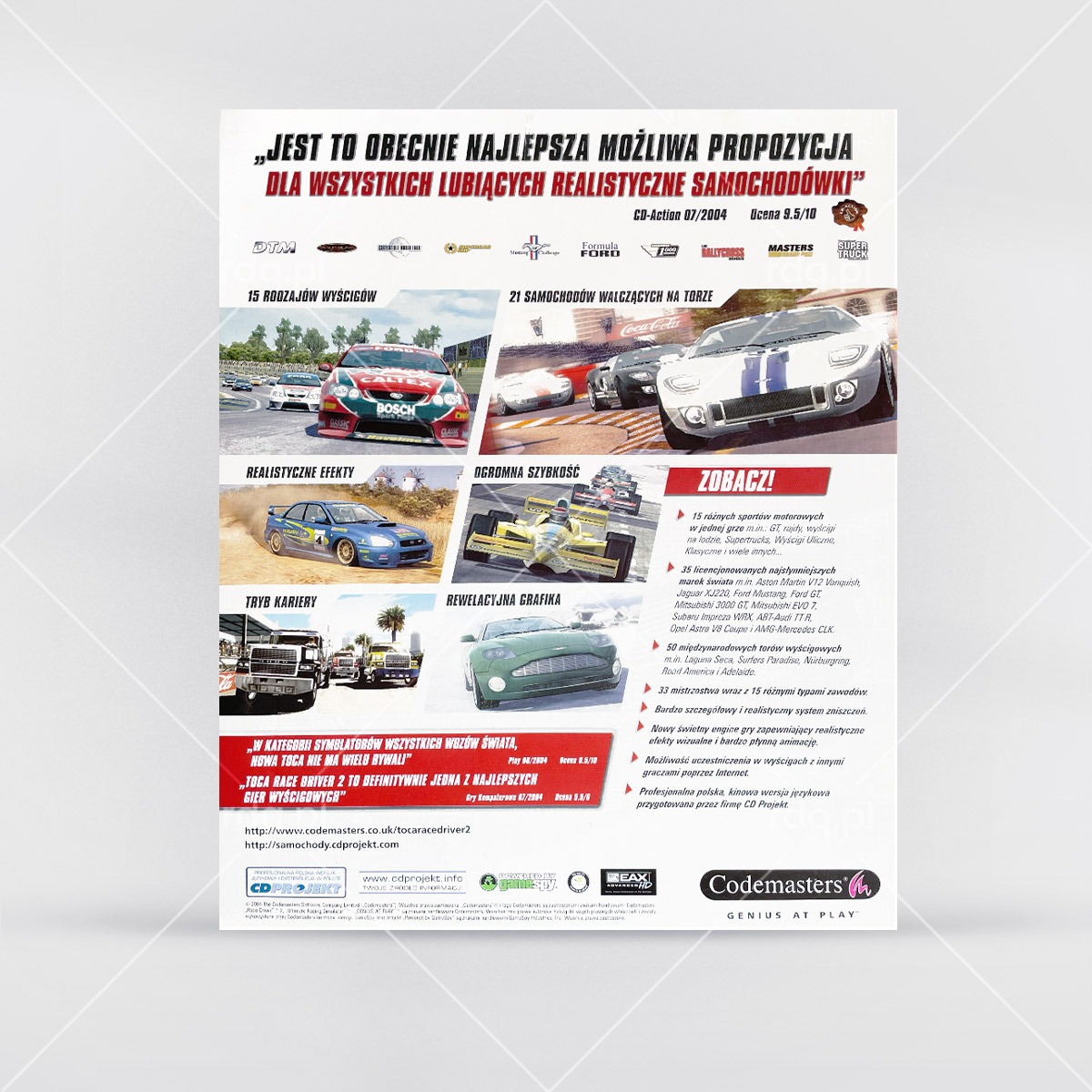 TOCA Race Driver 2 Rok wydania: 2004 Producent: Codemasters Wydawca: Codemasters Wydanie: PL - CD Projekt Gatunek: Wyścigi, Samochodowe Tryb: Singleplayer, MultiplayerPudełko Okładka Kategorie: Big Box, Q – TPrzez Radek Jakubiak16 stycznia 2026Project navigationPoprzedniePrevious project:Tomb Raider: UnderworldNastępneNext project:Need For Speed: Porsche 2000