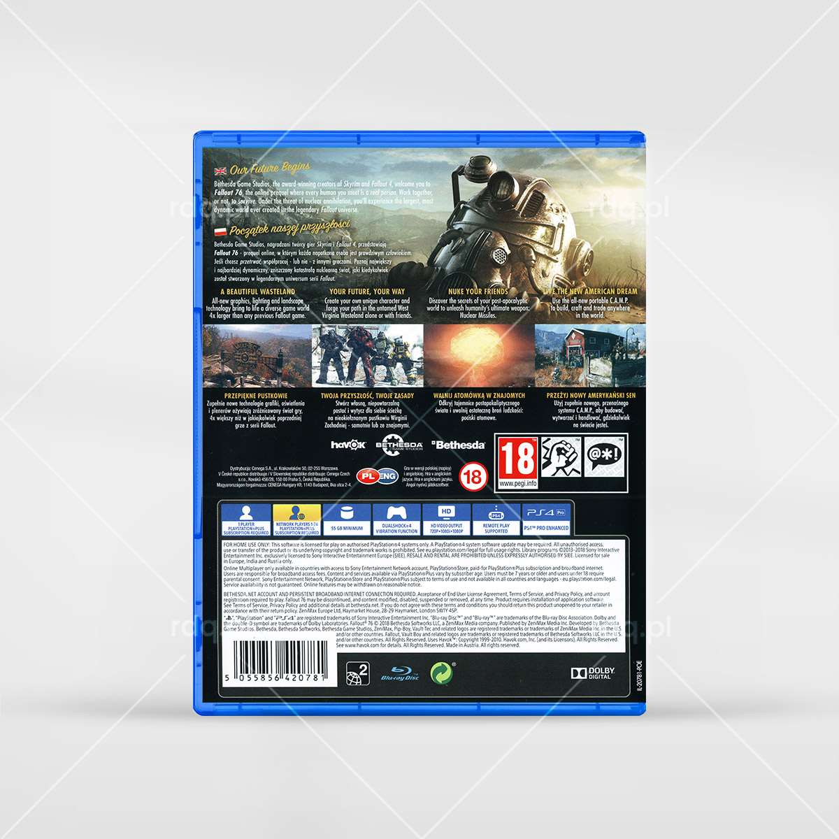 Fallout 76 Rok wydania: 2018 Producent: Bethesda Wydawca: Bethesda Softworks Wydanie: PL - Cenega Gatunek: FPP, TPP, MMO, RPG, Post-apo Tryb: Multiplayer Pudełko