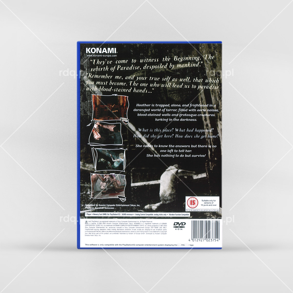 Silent Hill 3 Rok wydania: 2003 Producent: Konami Wydawca: Konami Wydanie: UK Gatunek: Gra akcji, TPP, Horror Tryb: Singleplayer Pudełko