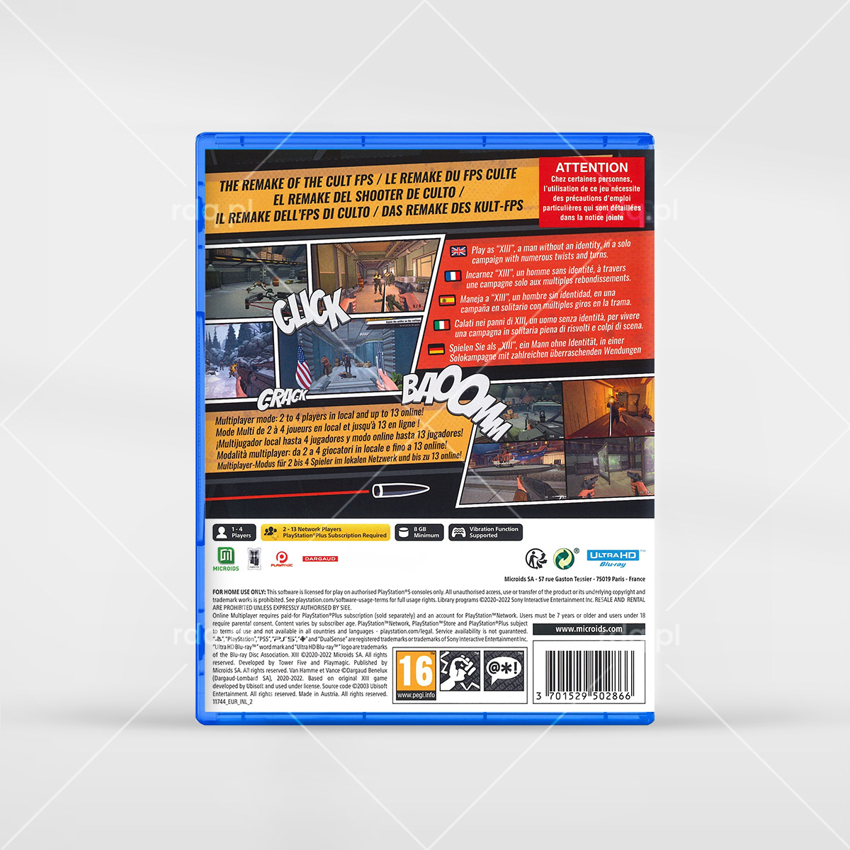 XIII (Remake) Rok wydania: 2020 Producent: Tower Five Wydawca: Microids Wydanie: UK Gatunek: FPS, FPP, Gra akcji, Strzelanka, Komiks Tryb: Singleplayer, Multiplayer Pudełko